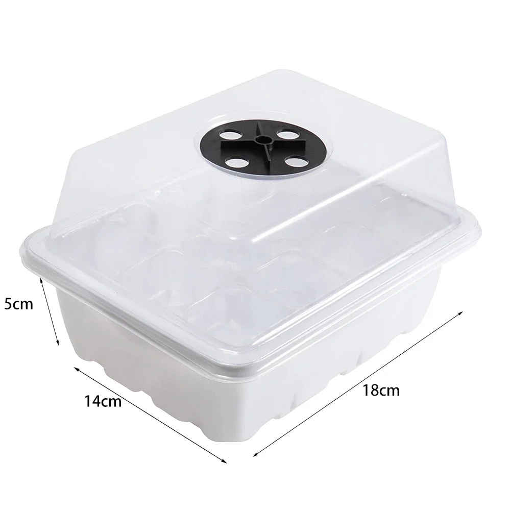 This 12-grid seed starter tray is perfect for growing healthy seedlings from seeds. Designed with ventilation holes, it helps regulate airflow and moisture for optimal germination. The clear cover creates a mini greenhouse effect to support early plant growth. Ideal for starting flowers, vegetables, herbs, and plants indoors or outdoors. Each cell keeps seedlings organized and prevents root tangling. Made from durable materials for repeated seasonal use. Easy to water, monitor, and maintain during the growing process. Perfect for home gardeners, greenhouses, and nurseries. Lightweight and compact for convenient storage and setup. Start your garden successfully with this practical seed starter tray and planting kit.