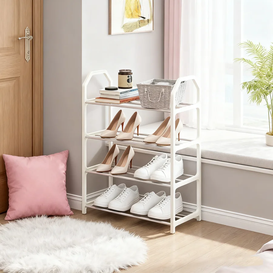 Keep your shoes tidy and your home clutter-free with the 4-Tier Trapezoidal Shoe Rack Organizer. Designed with a slanted trapezoidal frame, this rack not only saves space but also provides a stylish and modern look for any room. With four spacious tiers, it offers enough storage to hold multiple pairs of shoes, from sneakers and flats to sandals and slippers. The open design allows for proper ventilation, keeping footwear fresh and dry. Its compact size makes it ideal for use in living rooms, entryways, bedrooms, or dorms, fitting seamlessly into any décor. Built with durability in mind, this stand is lightweight yet sturdy enough to support daily use. Assembly is quick and simple, with no complicated tools required, making it convenient for anyone. The portable design means you can easily move it around when reorganizing or cleaning. Perfect for small apartments or homes with limited space, this rack helps maximize organization without taking up unnecessary room. Whether for families or individuals, the 4-Tier Shoe Stand offers both functionality and style, keeping your footwear accessible, organized, and neatly displayed.