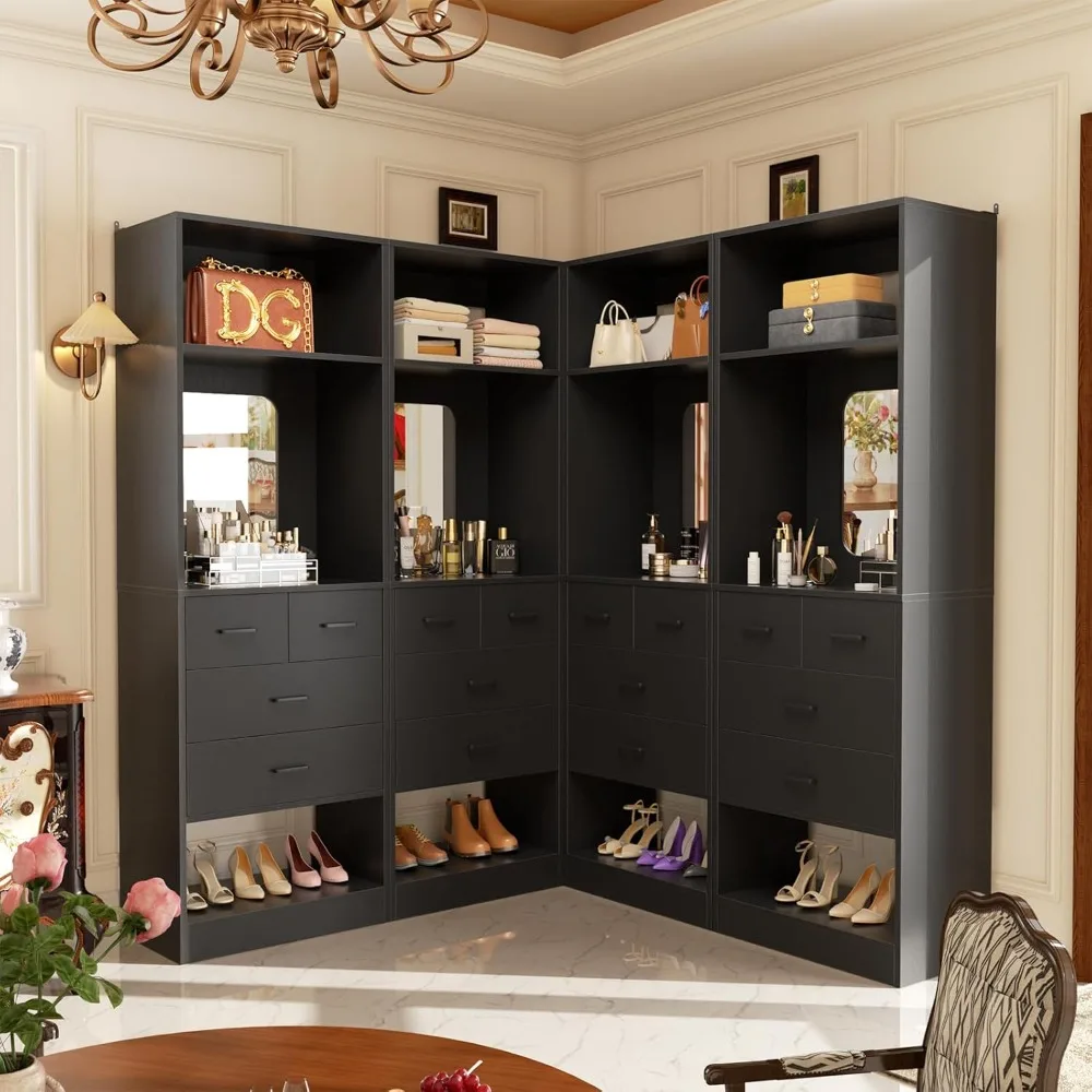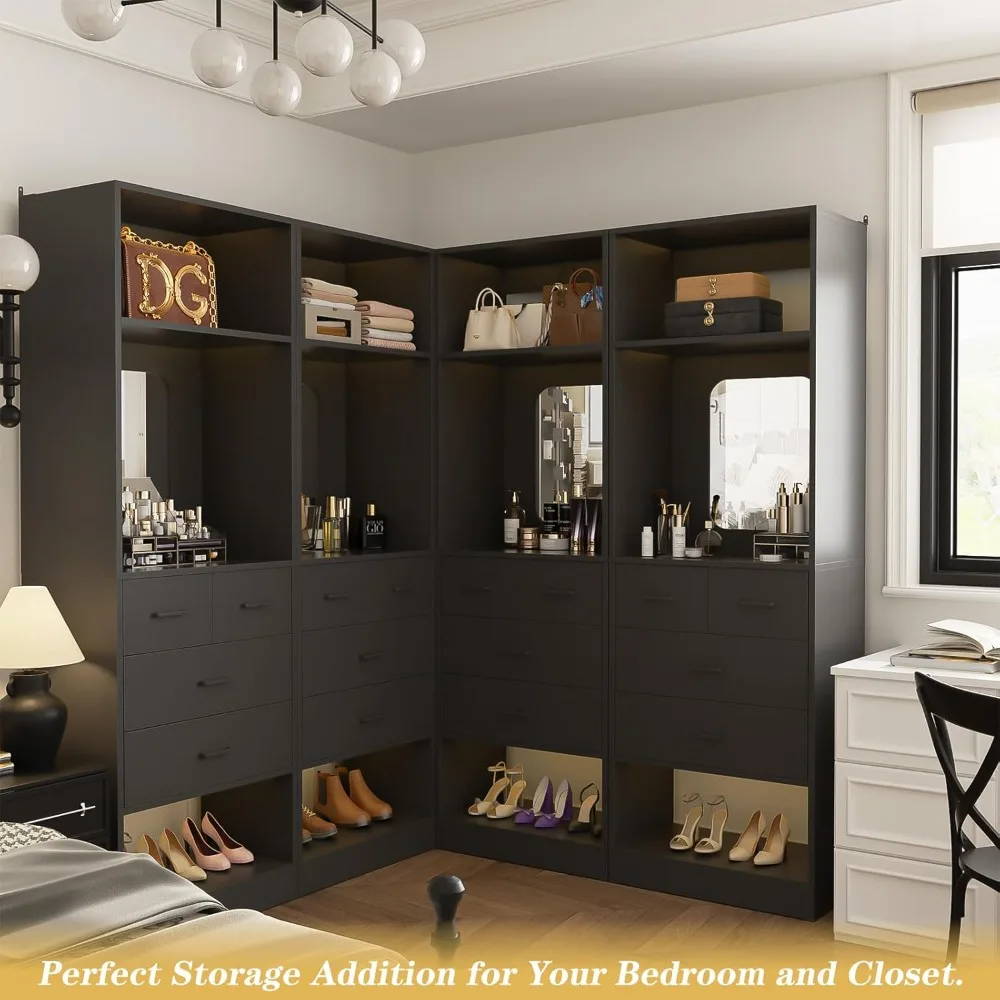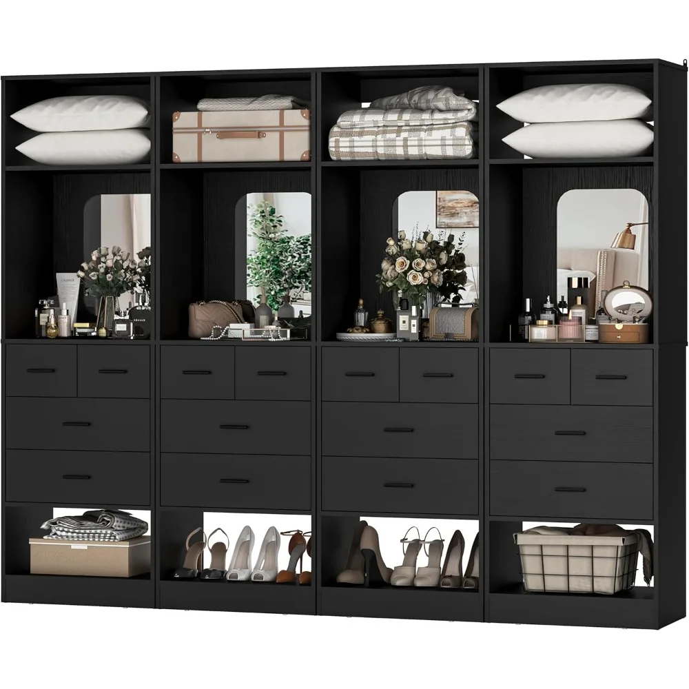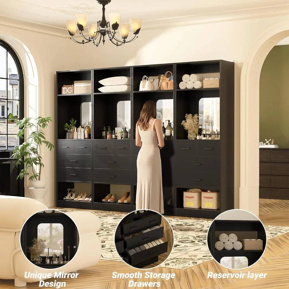 Transform your space with our 100-Inch Freestanding Closet System. This sturdy 8FT organizer features spacious shelving, smooth-glide drawers, and a built-in mirror for everyday convenience. Designed in durable wood with a modern look, it offers the perfect blend of storage, style, and function for any bedroom or walk-in closet.