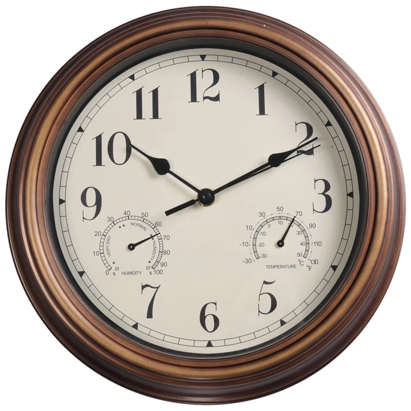 12-Inch Retro Waterproof Wall Clock – Thermometer & Hygrometer