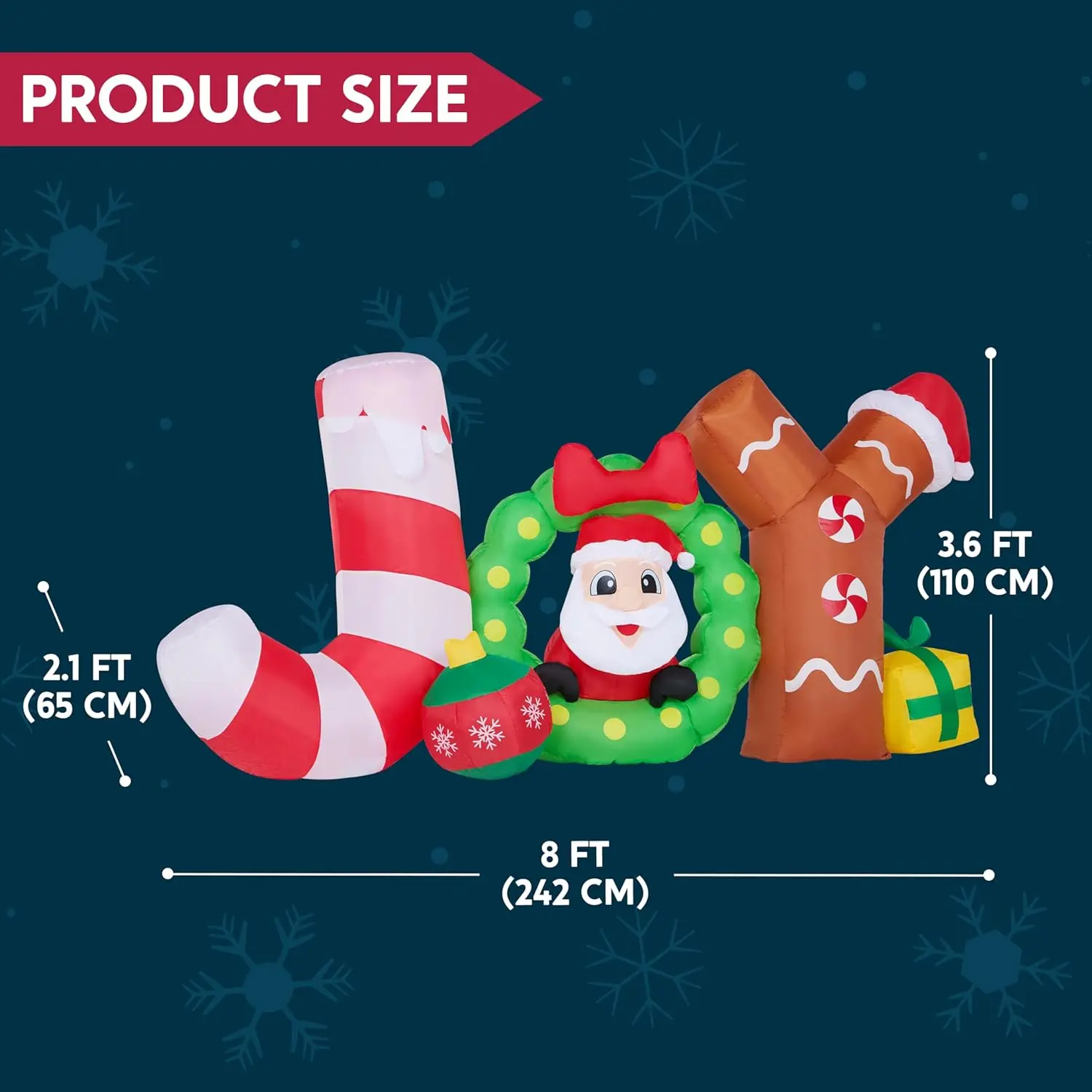 Spread holiday cheer in a big way with the JOYFY 8FT Inflatable “JOY” Christmas Decoration, featuring Santa Claus nestled inside the letters of JOY and built-in bright LED lights. This eye-catching inflatable brings a festive glow to your yard, porch, or indoor party, making it the perfect centerpiece for your Christmas display.