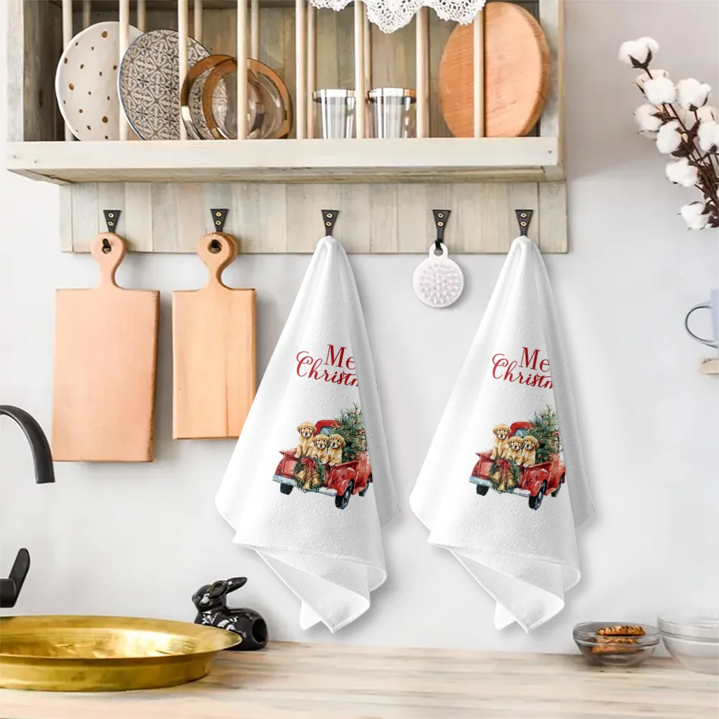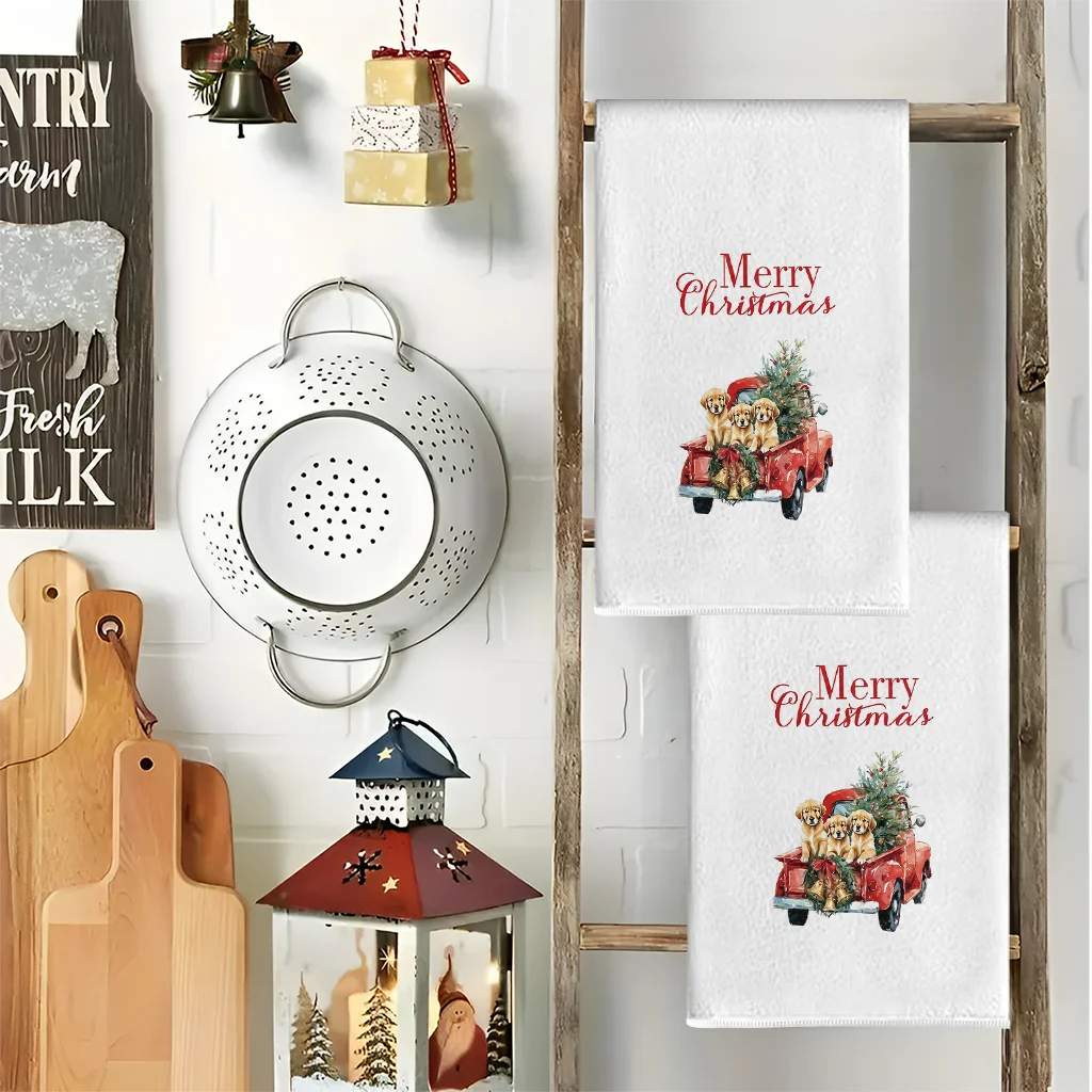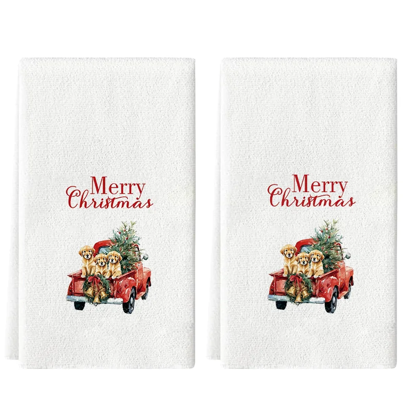 Add festive farmhouse charm to your kitchen with this 2-piece Christmas Red Truck Kitchen Hand Towel Set! Each towel features a classic red pickup truck with a cute dog design, evoking the cozy nostalgia of the holiday season.