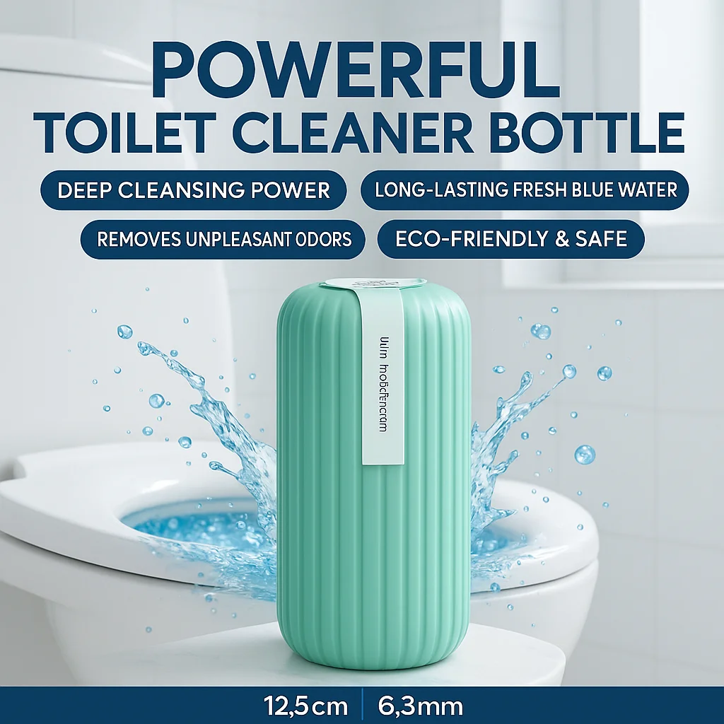 Keep your bathroom sparkling and fresh with the Automatic Toilet Cleaner Bottle, designed for effortless and continuous cleanliness. This deep cleansing formula works automatically with every flush to remove stains, kill germs, and eliminate odors at the source. The cleaner releases a long-lasting blue water that not only refreshes your toilet bowl but also leaves behind a clean, hygienic scent. Made with eco-friendly ingredients, it provides powerful cleaning without harsh chemicals, making it safe for your plumbing and septic systems. Simply place the bottle in the tank, and it begins working instantly—no scrubbing or extra effort required. Ideal for busy households, it ensures your toilet stays clean, fresh, and deodorized for weeks. The non-toxic, biodegradable formula is tough on dirt but gentle on the environment. Perfect for maintaining a spotless, odor-free bathroom, the Automatic Toilet Cleaner Bottle delivers convenience, freshness, and cleanliness in one easy step. Enjoy a cleaner, more pleasant bathroom every day with this essential hands-free solution.