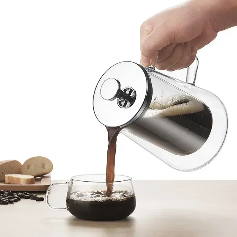 Equipped with a fine stainless steel filter, it ensures smooth, rich coffee by effectively separating grounds from your brew. Its modern, transparent design allows you to watch the brewing process, adding an elegant touch to your kitchen or office.