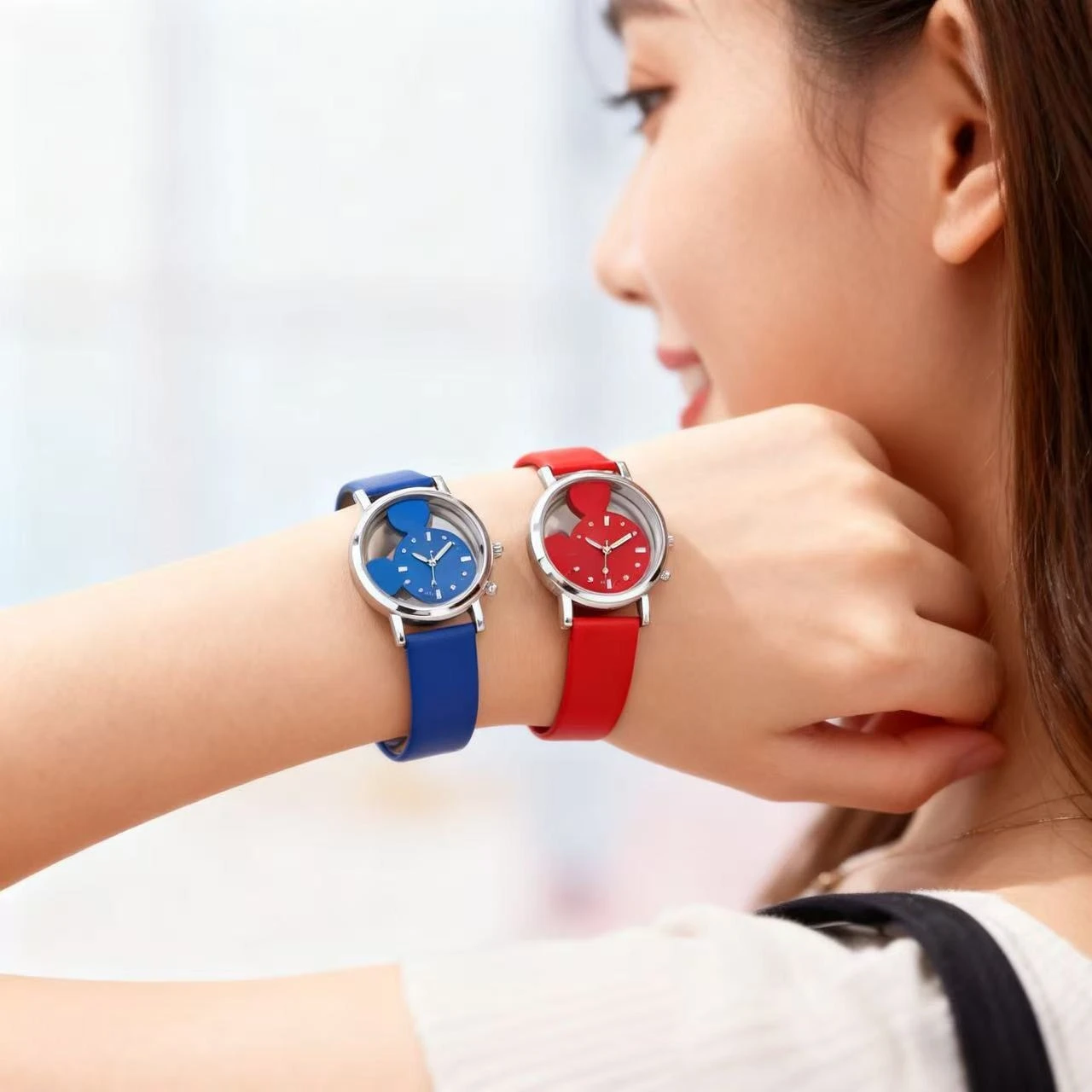 Add a touch of playful elegance to your style with the Hollow Mickey Women’s Quartz Watch, a charming blend of fashion and fun. Featuring a unique hollow Mickey Mouse design, this watch combines a modern minimalist look with a hint of nostalgia. The high-quality quartz movement ensures accurate timekeeping, while the soft leather strap offers comfort and durability for everyday wear. Lightweight and stylish, it’s perfect for both casual outings and daily use. The sleek round case and detailed craftsmanship make it a standout accessory that pairs beautifully with any outfit. Ideal as a gift for Disney fans or fashion lovers, the Hollow Mickey Women’s Quartz Watch brings together charm, comfort, and reliability—a timeless piece that celebrates fun and sophistication in every tick.