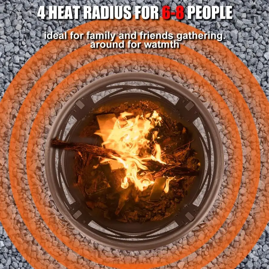 This 26-inch outdoor wood burning fire pit is perfect for patios, backyards, and outdoor gatherings. Crafted from durable metal, it provides long-lasting heat and stability. The included cooking grill allows you to enjoy grilling meals over an open flame. A protective spark screen helps prevent flying embers for added safety. Its round design offers 360-degree warmth for friends and family. Ideal for bonfires, camping-style evenings, and outdoor entertaining. The sturdy construction ensures reliable performance season after season. Easy to assemble and maintain for everyday outdoor use. Adds both warmth and ambiance to any outdoor space. Enjoy cozy nights and memorable moments with this versatile outdoor fire pit.