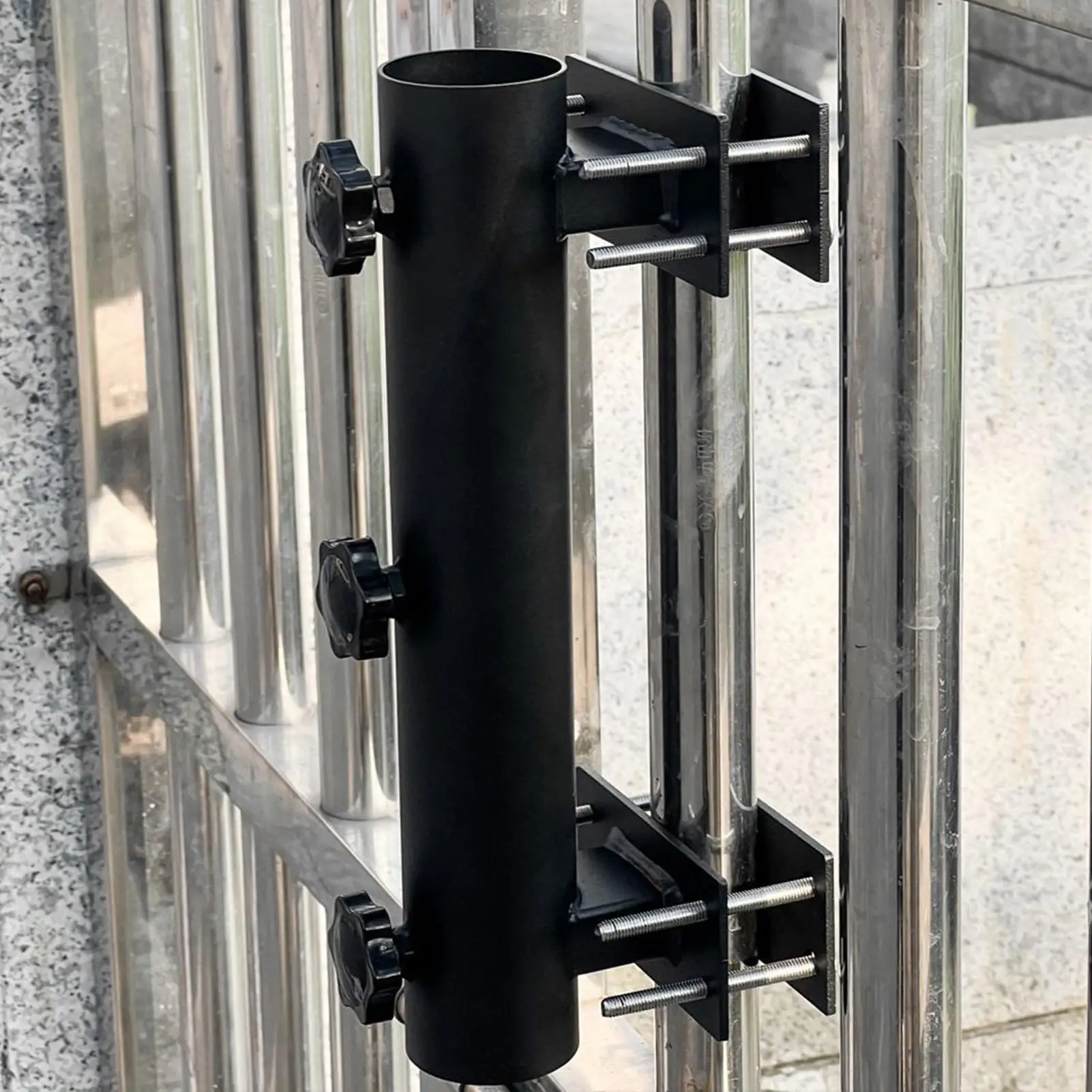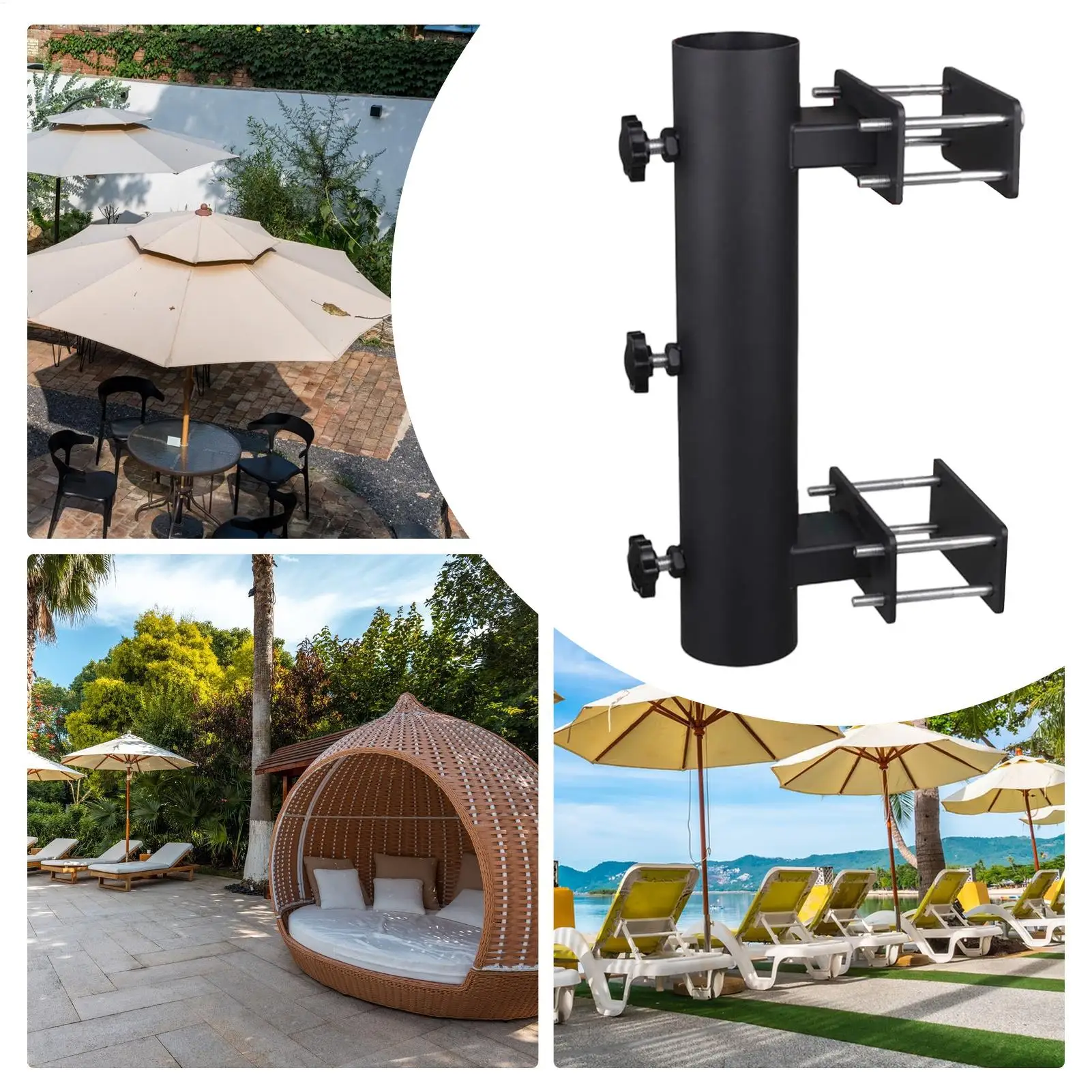 Crafted from high-quality, weatherproof metal, it provides long-lasting durability and corrosion resistance for all-season outdoor use. The adjustable clamp design allows it to fit most umbrella poles and railing sizes, ensuring a snug, reliable fit for patios, balconies, porches, and gardens.
