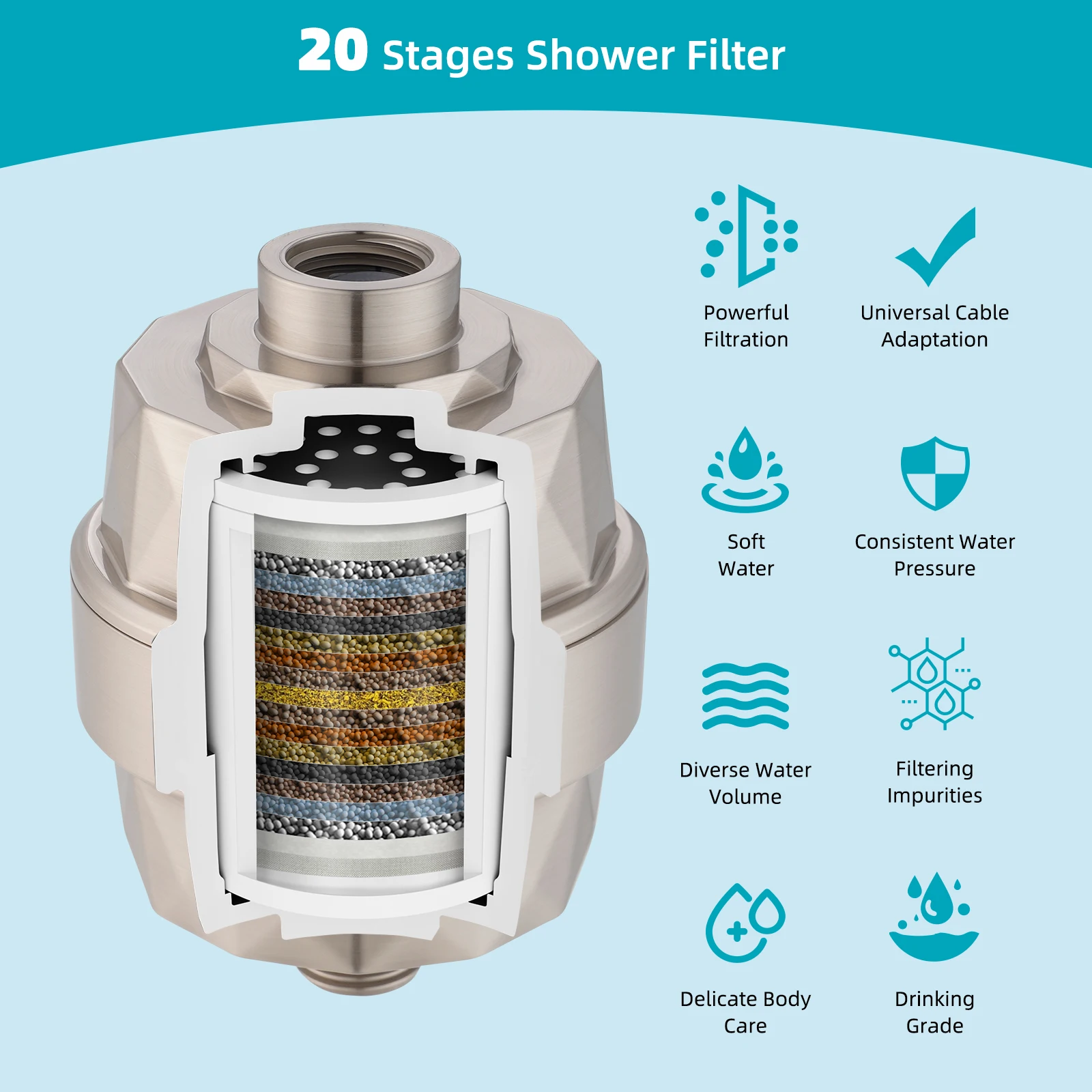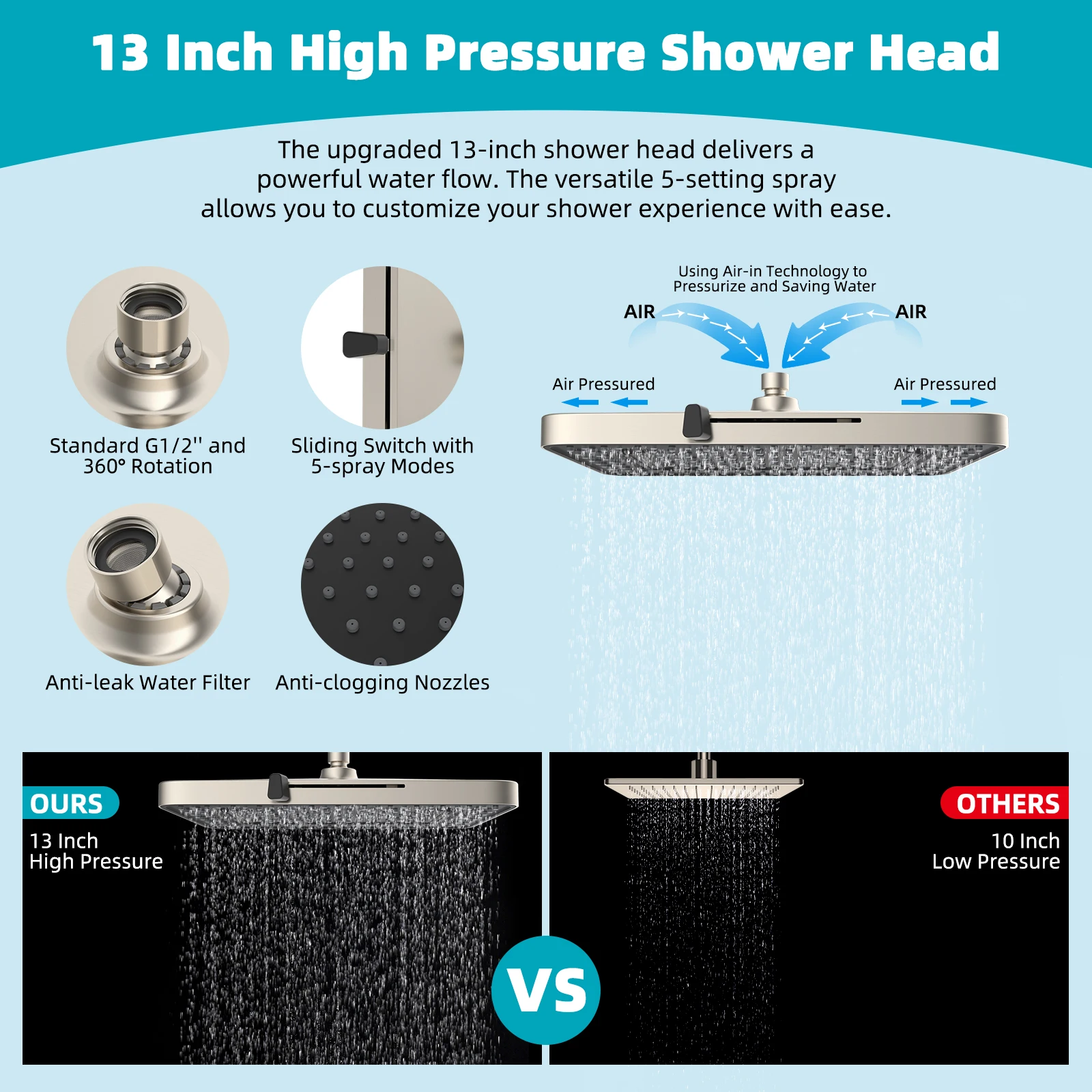 Experience the ultimate in comfort and cleanliness with the Hibbent Rainfall Filter Shower Head. This 13-inch high-pressure showerhead combines powerful water flow with built-in filtration to provide a refreshing, spa-like shower every day.