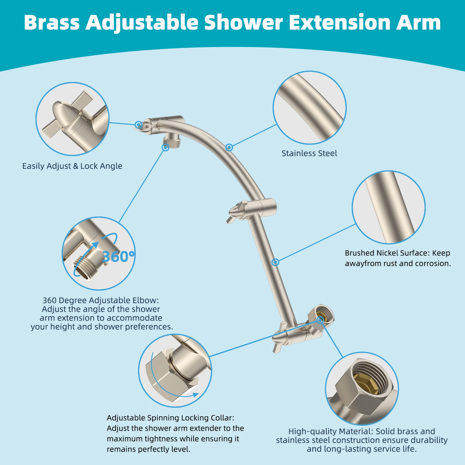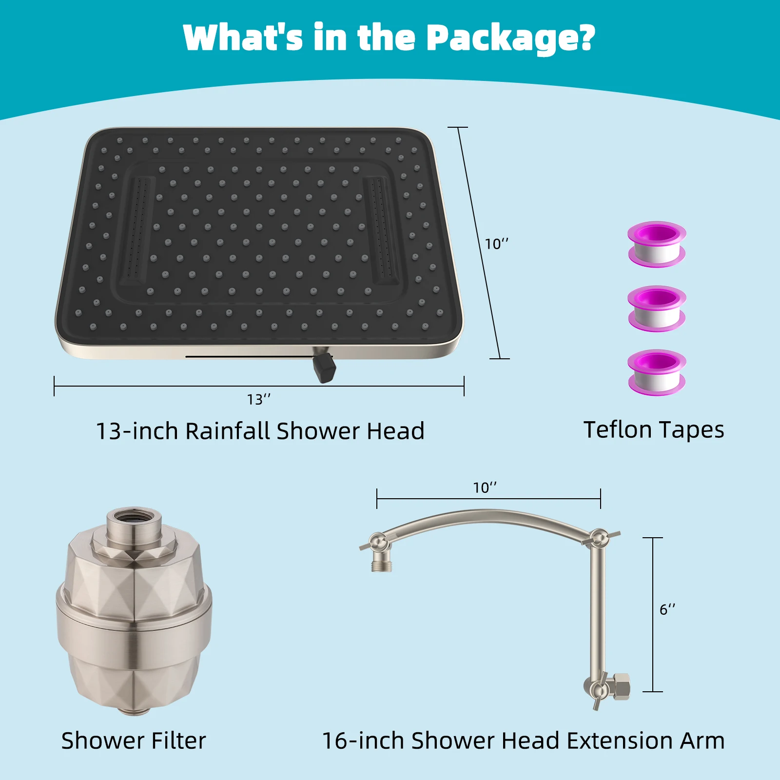 The 16-inch adjustable shower arm allows you to position the showerhead perfectly for your height and preference. Designed for easy installation, it connects quickly to any standard shower system — no tools required.