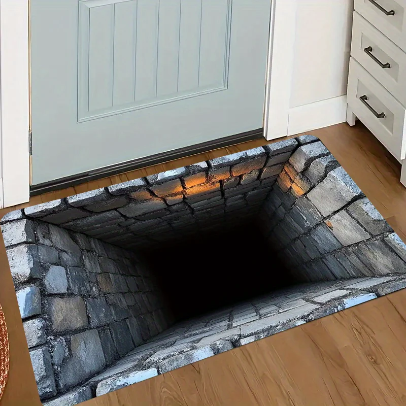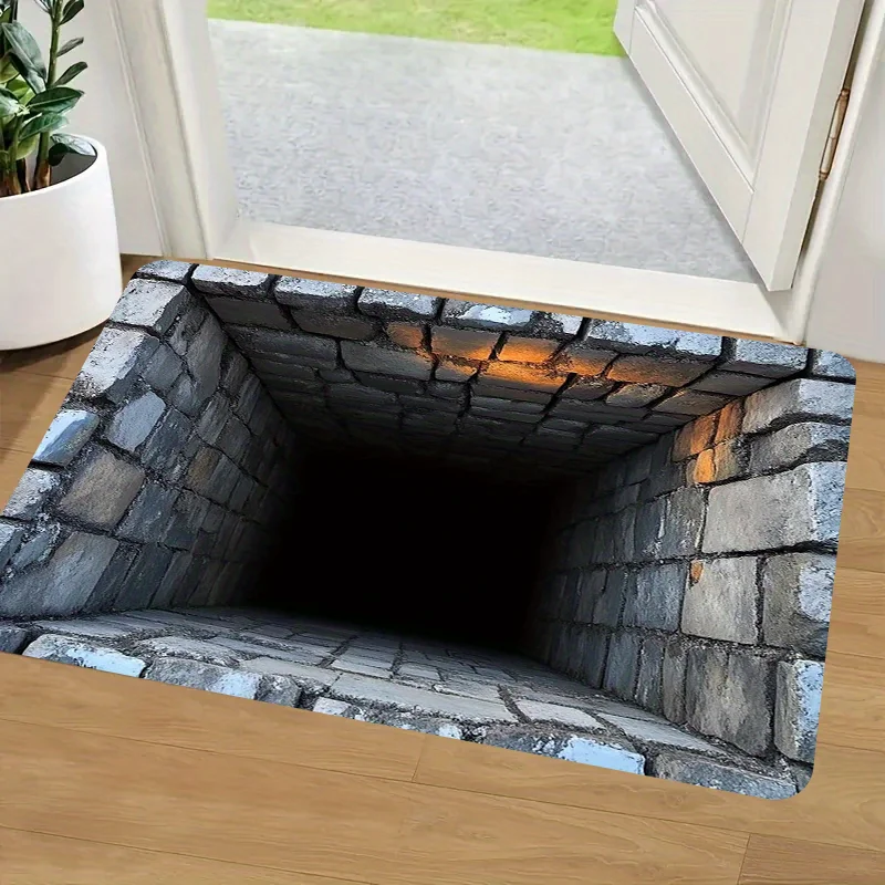 Realistic Brick Tunnel Illusion Rug – 3D Graphic Skid-Resistant Carpet