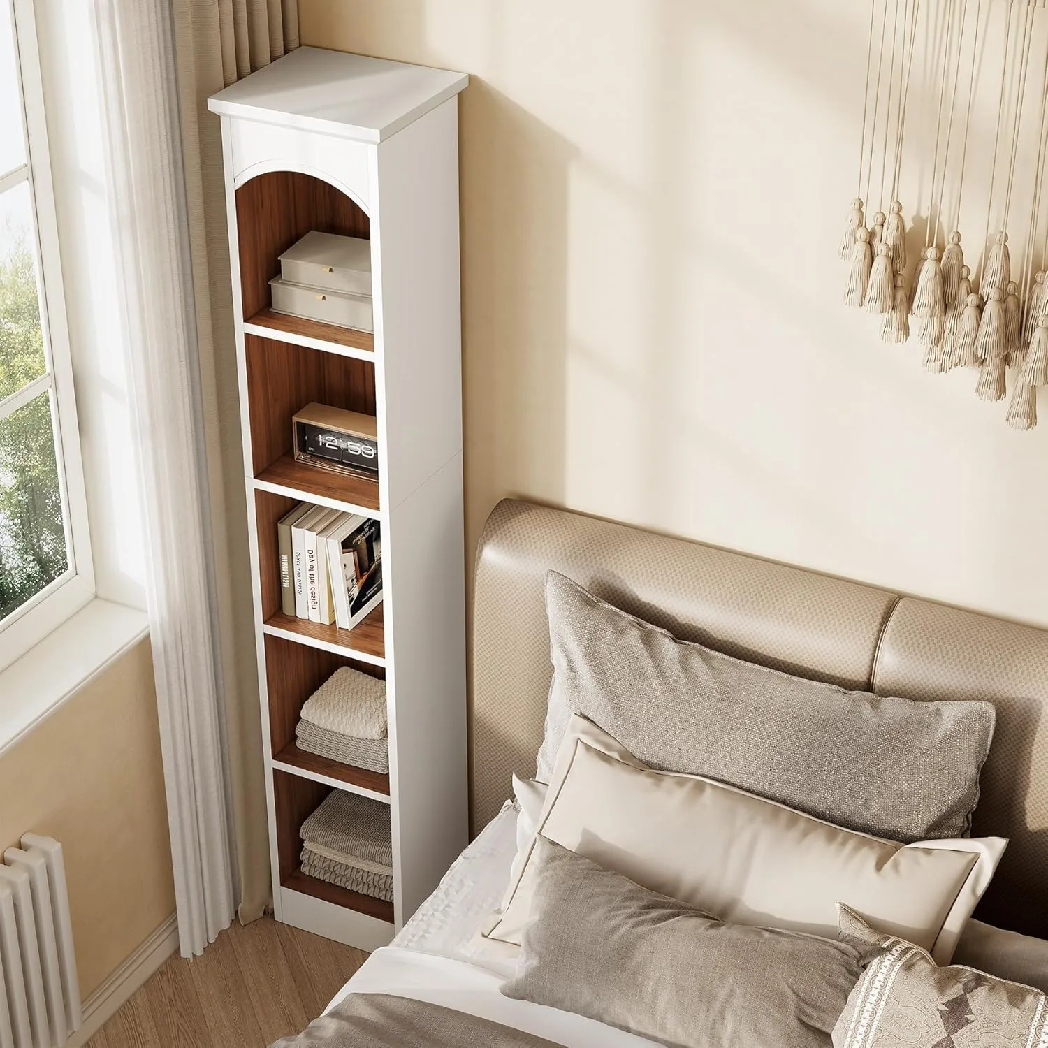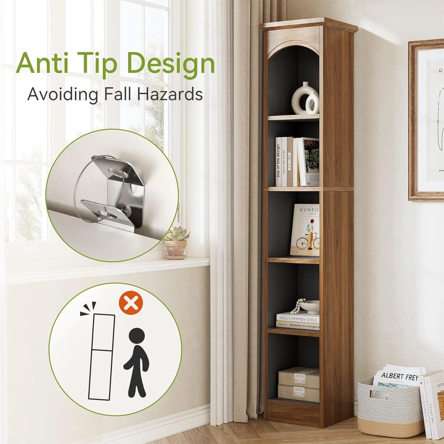 Crafted with durability in mind, this bookshelf is built from sturdy materials that ensure long-lasting use and stable support for your belongings. The tall, slim design makes it ideal for small rooms, apartments, or any space where maximizing vertical storage is essential. Whether you use it as a display shelf, office organizer, or decorative accent, it complements a wide range of interior styles—from modern and minimalist to contemporary and transitional.