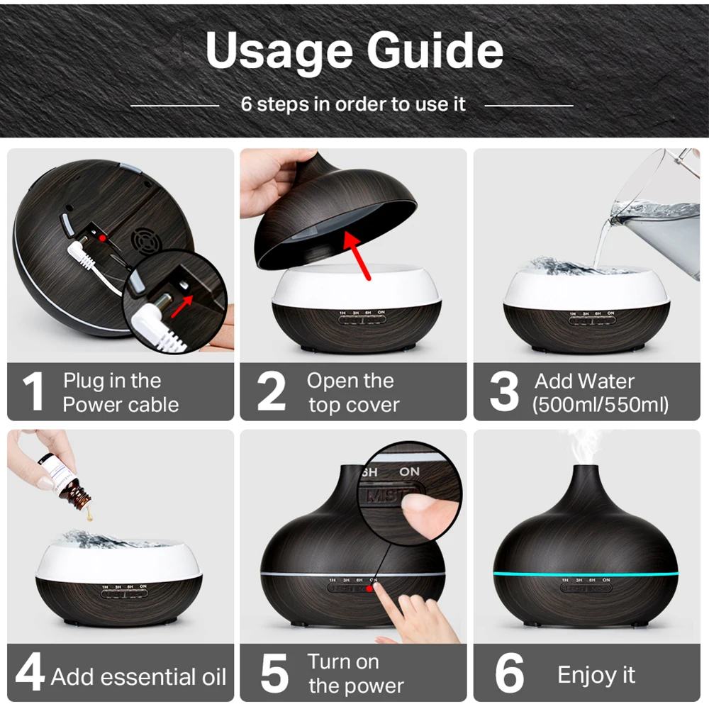 Transform your home into a calming oasis with the Wood Grain Aromatherapy Diffuser. This beautifully designed diffuser combines natural elegance with advanced ultrasonic technology to deliver soothing mist and gentle fragrance throughout your space. Its wood grain finish adds a touch of modern warmth to any room, blending perfectly with your home décor. The diffuser features a remote control, making it easy to adjust mist settings, light colors, and timer functions from across the room. With 7 vibrant LED color options, you can set the mood for relaxation, focus, or sleep at the touch of a button. The ultrasonic cool mist technology ensures quiet operation, perfect for bedrooms, offices, or yoga studios. It doubles as a humidifier, helping to add moisture to dry air and improve your overall comfort. Designed with auto shut-off safety, it powers down when the water runs low for worry-free use. Whether you want to create a spa-like atmosphere or simply freshen your living space, this diffuser delivers both style and function. Enjoy your favorite essential oils and breathe easier with every mist. Make your home smell as beautiful as it looks with this essential piece for everyday wellness.